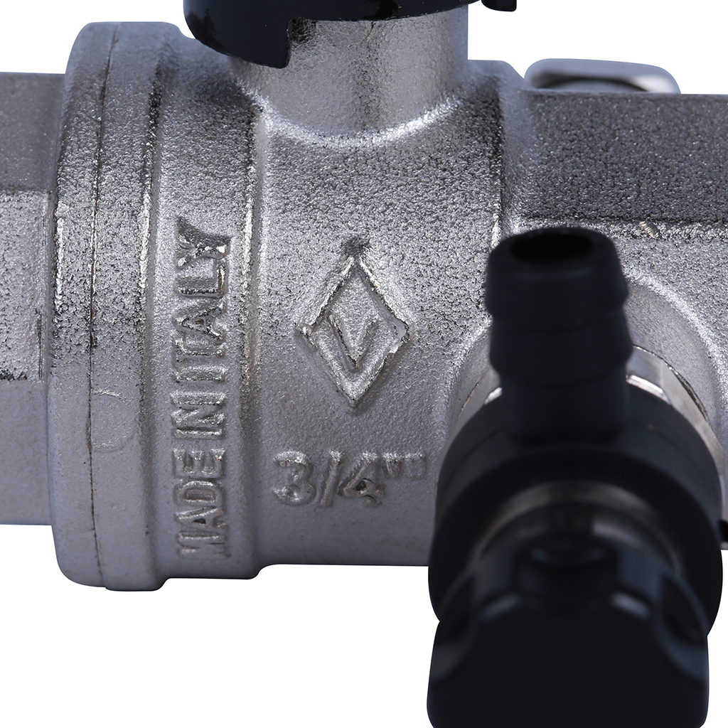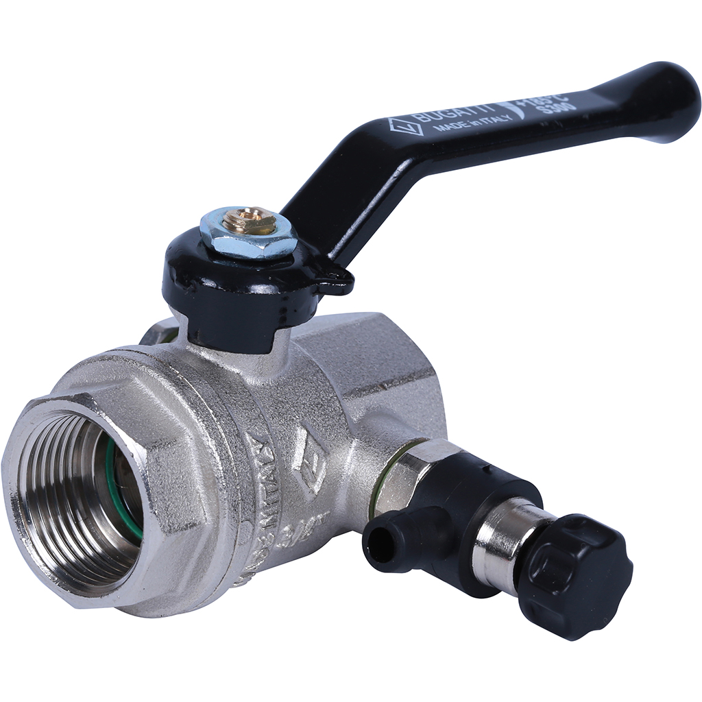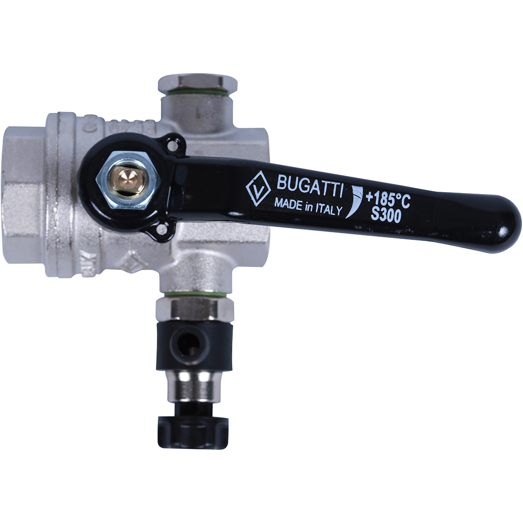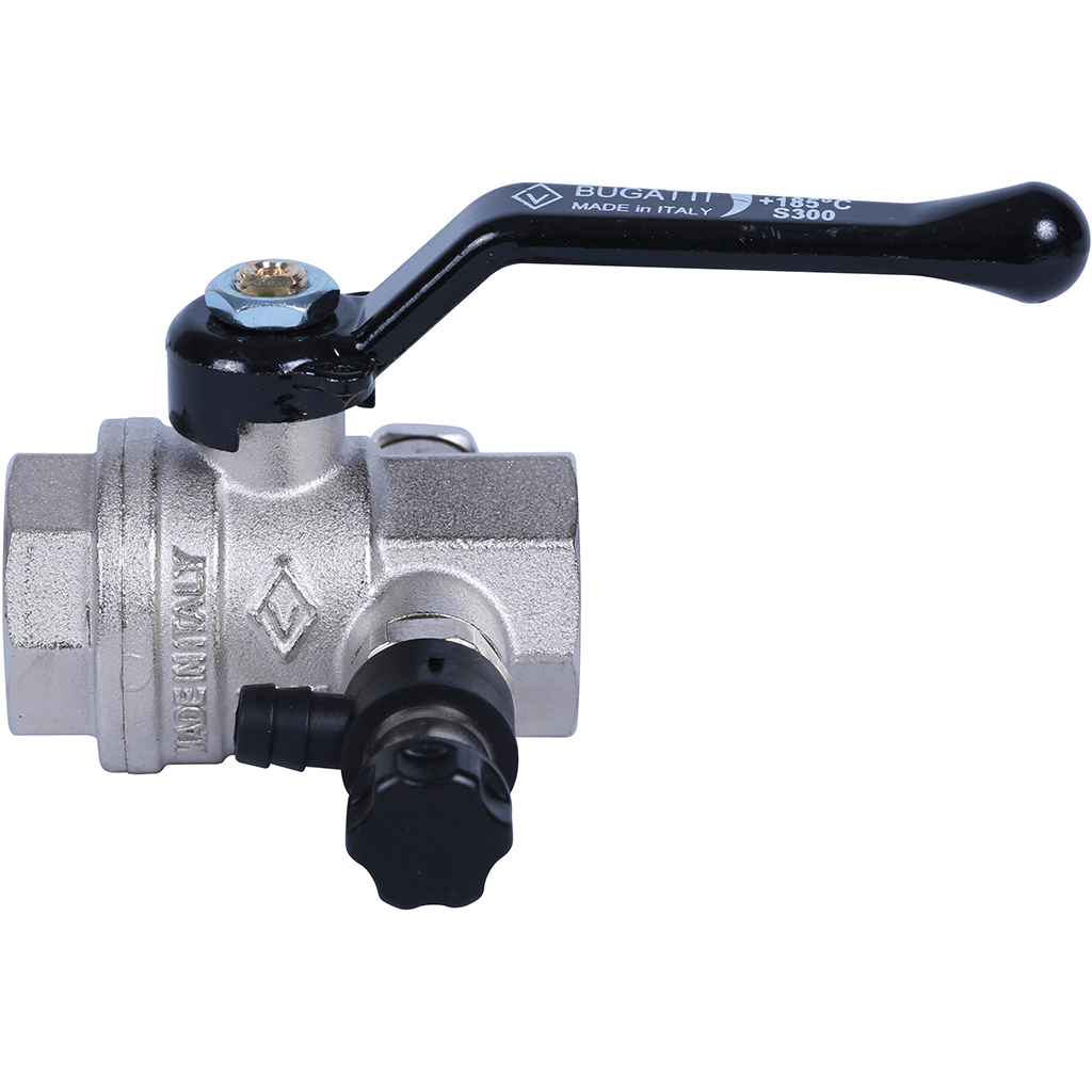 BUGATTI Oregon Кран шаровой 3/4" с дренажем и воздухоотводчиком, (ручка-рычаг алюминий) внут-внут