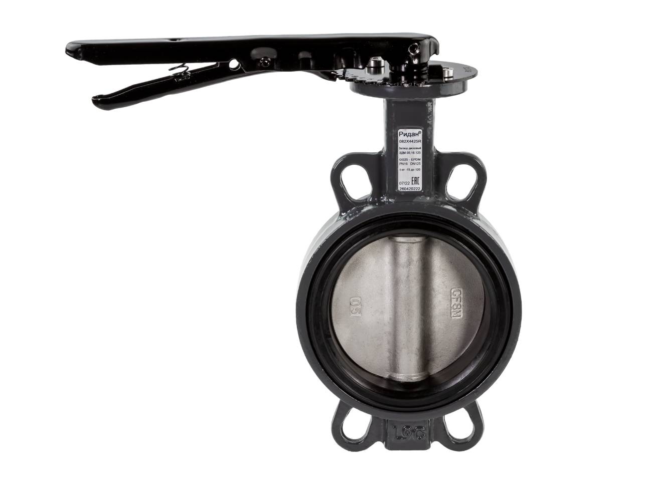 Дисковый поворотный затвор Ридан ЗДМ 03 DN150 PN16 с рукояткой межфланцевый (диск - чугун)