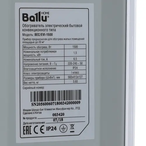 Конвектор электрический Ballu Evolution Digital Inverter BEC/EVI-1500