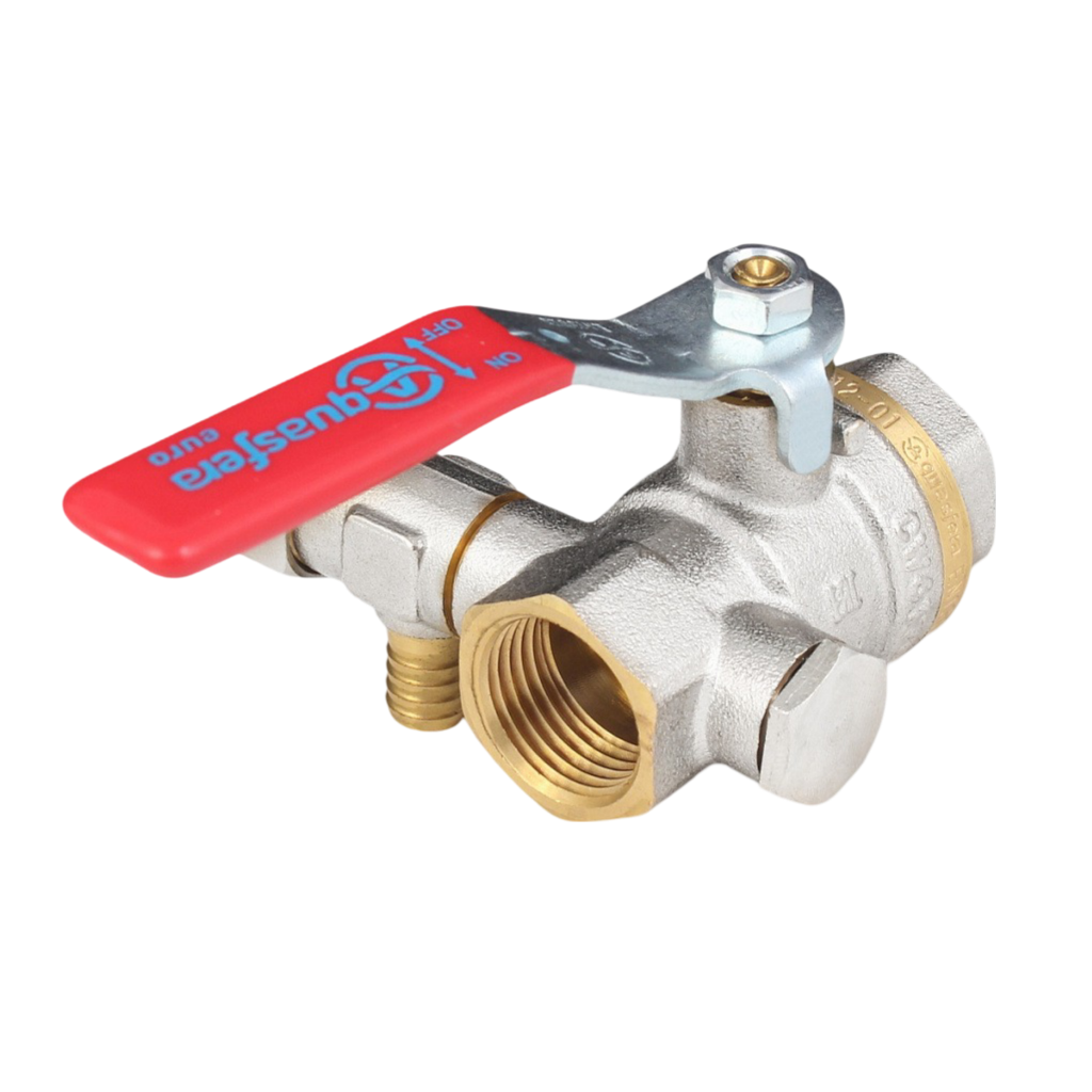 Кран шаровой Aquasfera 1012 Euro Ду25 Ру25 ВР 1" полнопроходной (рычаг красный) со спускником