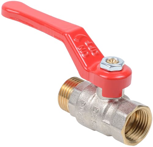 Кран шаровой Dist Стандарт Ду15 Ру40 ВР/НР полнопроходной (рычаг красный) никель