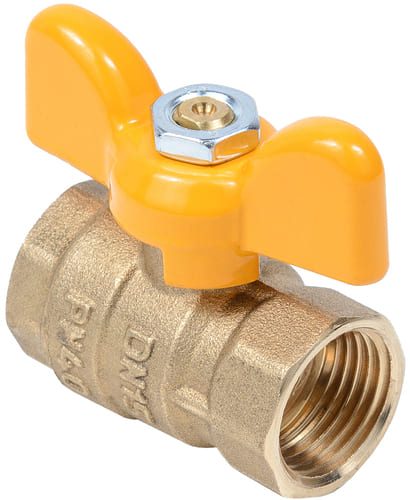 Кран шаровой Dist Стандарт Ду20 Ру40 ВР для газа полнопроходной (бабочка желтый)