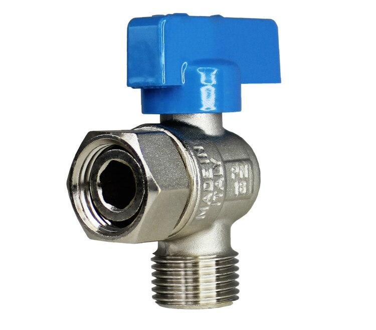 Кран шаровой ELSEN 1/2"х1/2" НВ угловой с накидной гайкой (ручка-флажок синяя)