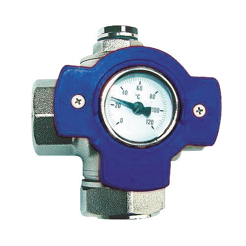 Кран шаровой HERZ 1" мультифункциональный с синим маховиком и термометром 0–120°С