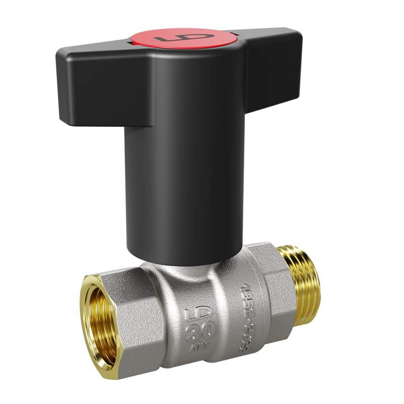 Кран шаровой LD Pride Ду15 Ру40 ВР/НР (с Т-рукояткой красной) никель