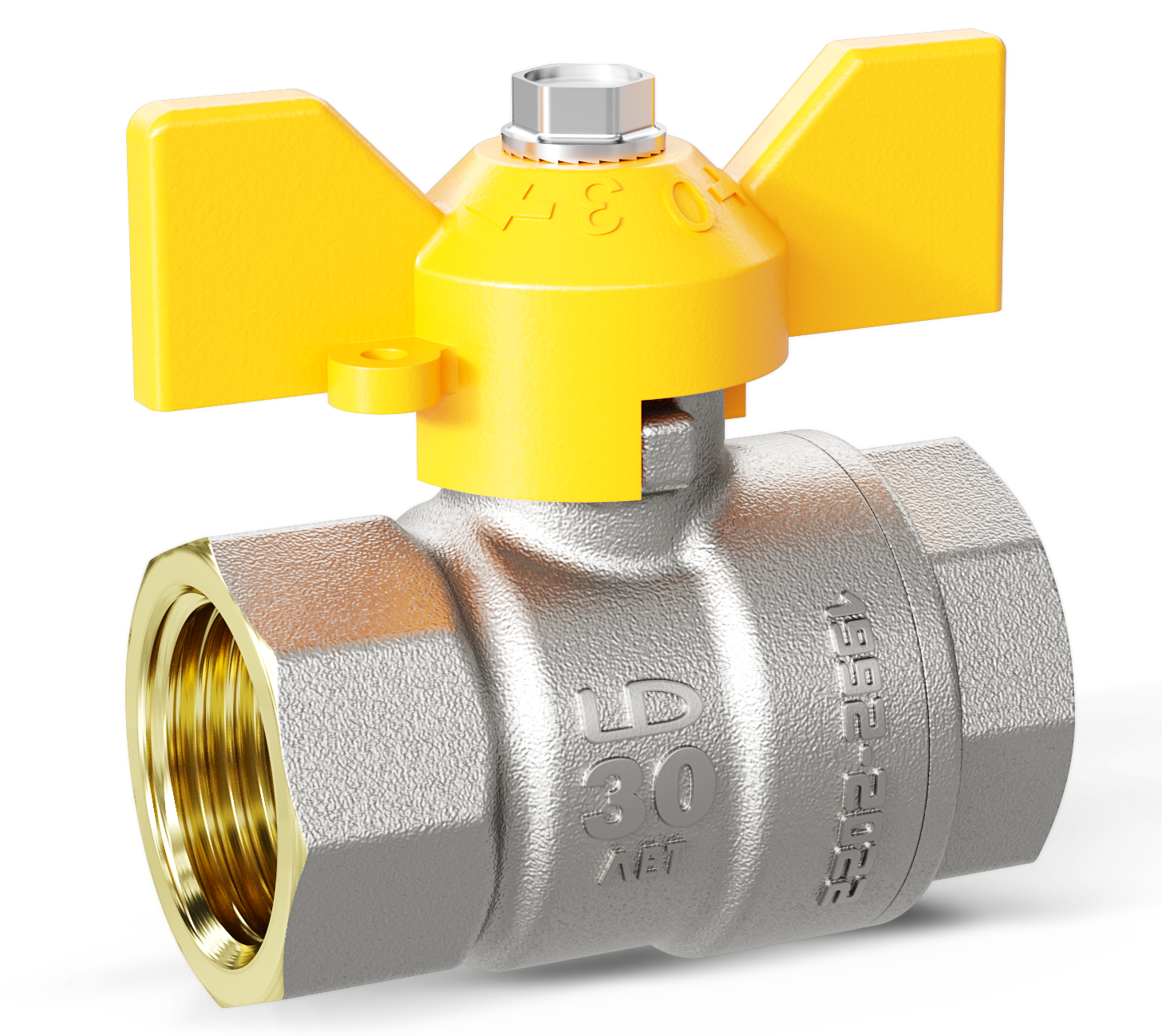 Кран шаровой LD Pride Ду20 Ру40 ВР для газа полнопроходной (бабочка желтая) никель