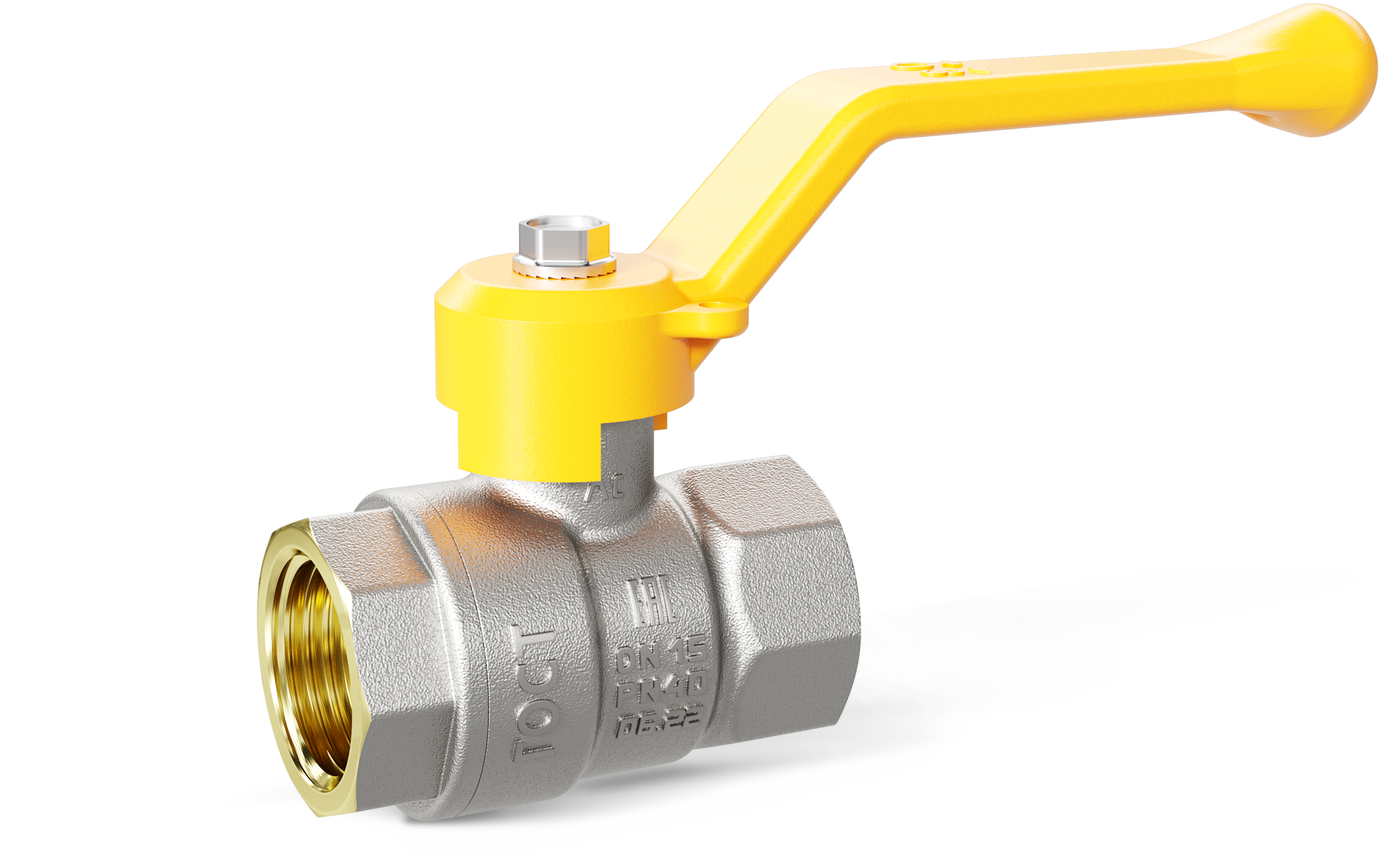 Кран шаровой LD Pride Ду40 Ру25 ВР для газа (рычаг желтый) никель