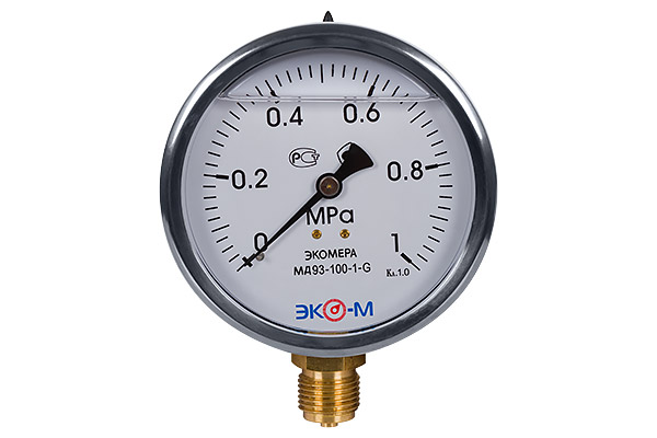 Манометр гидрозаполненный ЭКОМЕРА МД93 Дк100мм 0-1,0 МПа кл.1,0 G1/2" глицерин (радиальный)