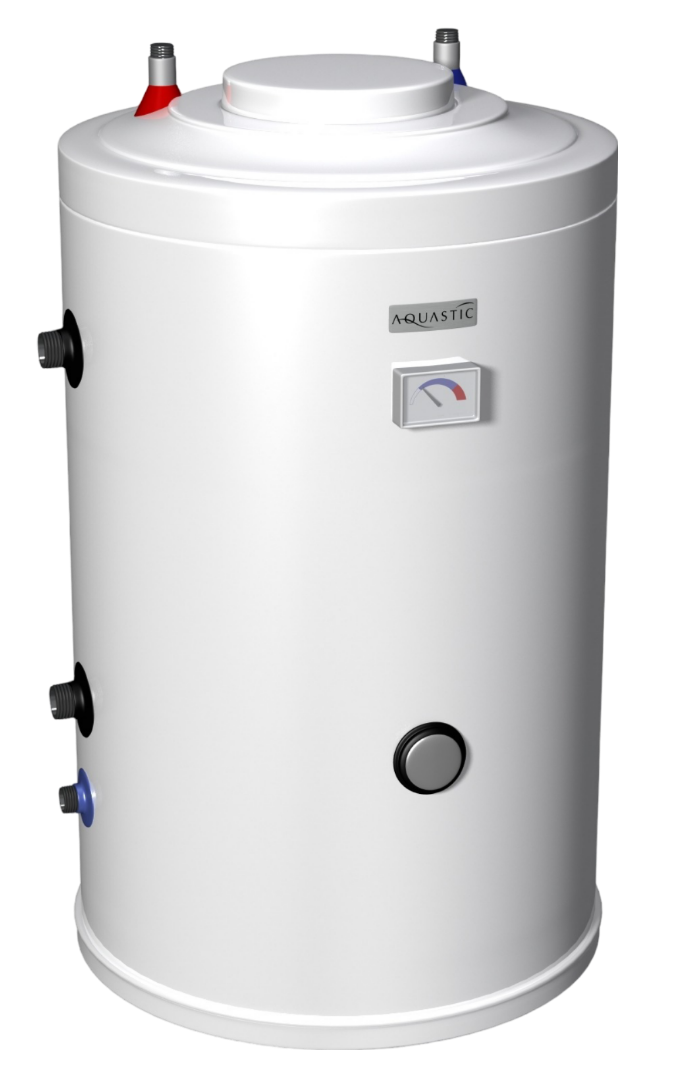 Бойлеры серии AQ IND SC имеют патрубок рециркуляции ГВС и возможность установки электрического ТЭНа (2 либо 3 кВт, ДОП.ОПЦИЯ). Вход воды в водонагреватель расположен снизу, для удобства слива. Внутренний бак водонагревателя обработан высокопрочным покрытием из стеклоэмали, поверх которого находятся пенополиуретановая изоляция и кожух из стали с порошковой покраской. В комплект поставки входят термостат и индикатор работы бойлера. Нагрев воды в бойлере может происходить при помощи любого котла или солнечного коллектора (последний тип нагрева рекомендуется для моделей на 150 и 200 литров). Для управления котлом (солнечным коллектором), а также для регулирования температуры воды, служит контактный регулятор, при помощи которого можно установить нужную температуру до 65 °С. Если снять крышку арматурного отделения у моделей напольного исполнения, можно установить и меньшую температуру. Рабочее давление 7 бар, испытательное 12 бар.