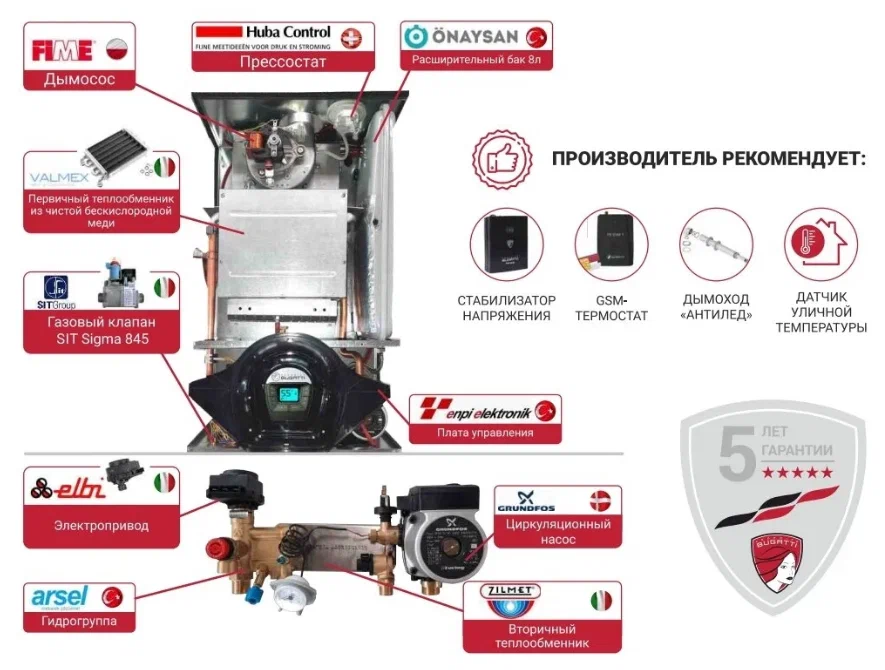 Настенный конвекционный газовый котел Federica Bugatti 32 VARME 2-х контурный с дисплеем
