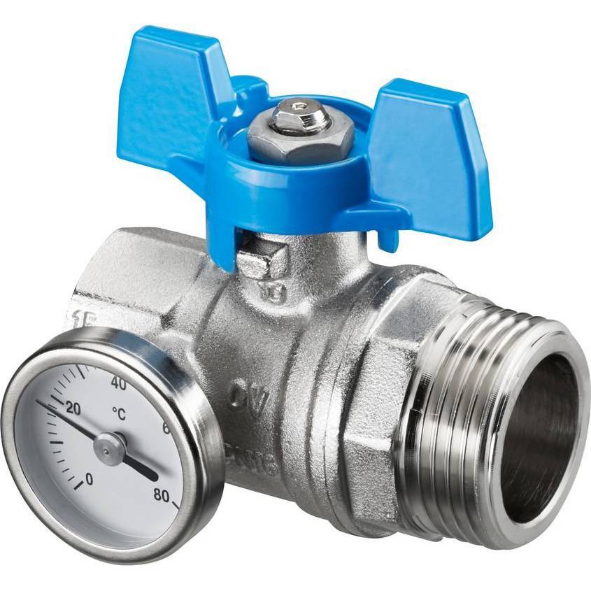 OVENTROP Кран шаровой Oventrop муфтовый BP 1" х НР 1" с термометром 0-80°C , с синей ручкой бабочкой