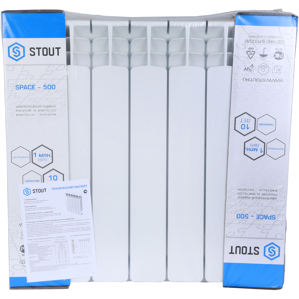Радиатор биметаллический STOUT Space 500 x 8 секций (нижнее правое подключение)