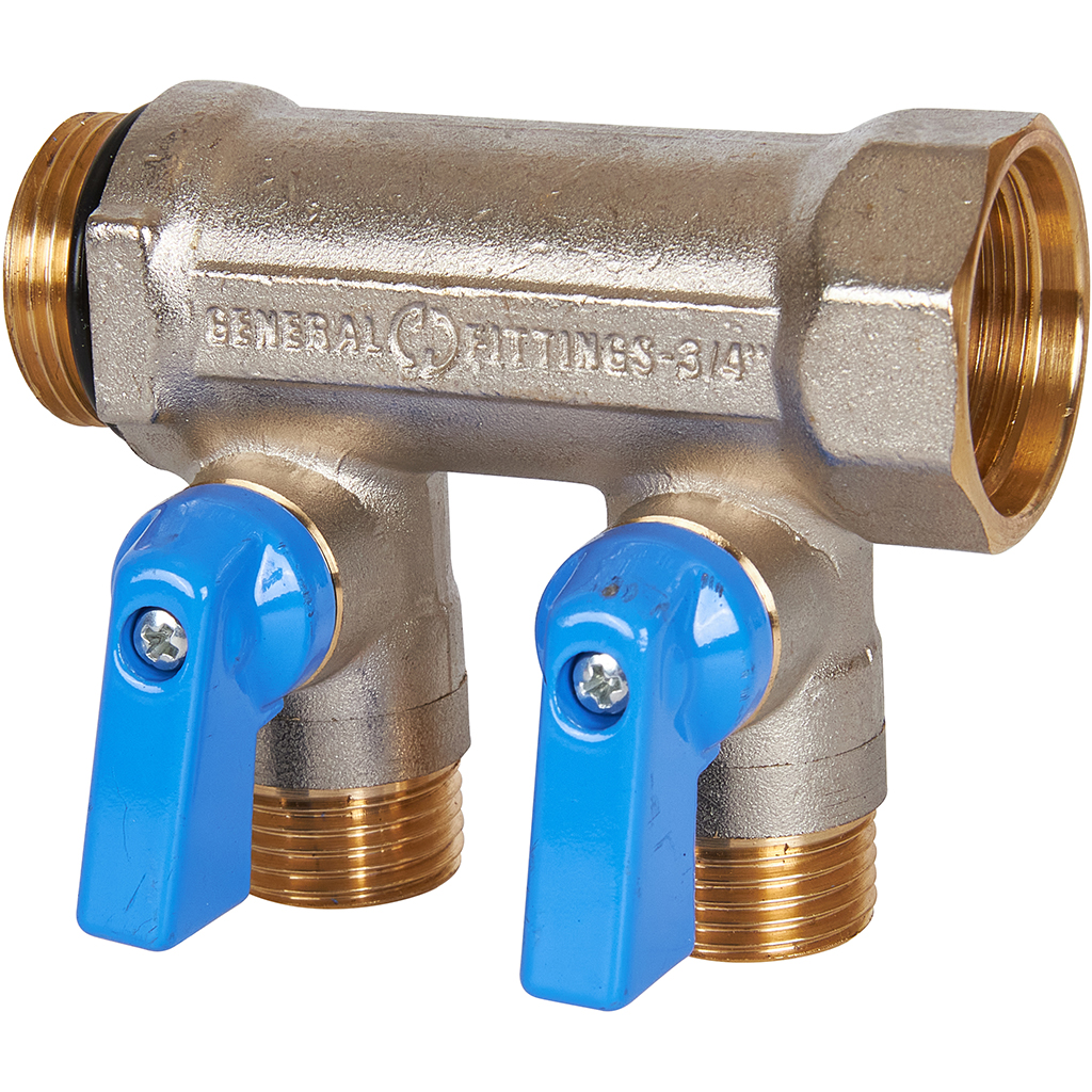 Распределительный коллектор STOUT 3/4"x1/2" с шаровыми кранами 2 отвода (синие ручки)