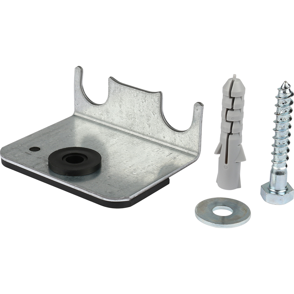 Используется в системах отопления для закрепления пары Г-образных трубок RAUTITAN на черновой бетонной стяжке пола. Межцентровое расстояние: 50 мм. В комплект входят: звукоизолирующая прокладка, дюбель 10 мм, винт (оцинкованная сталь, размер ключа 13 мм) и шайба.
