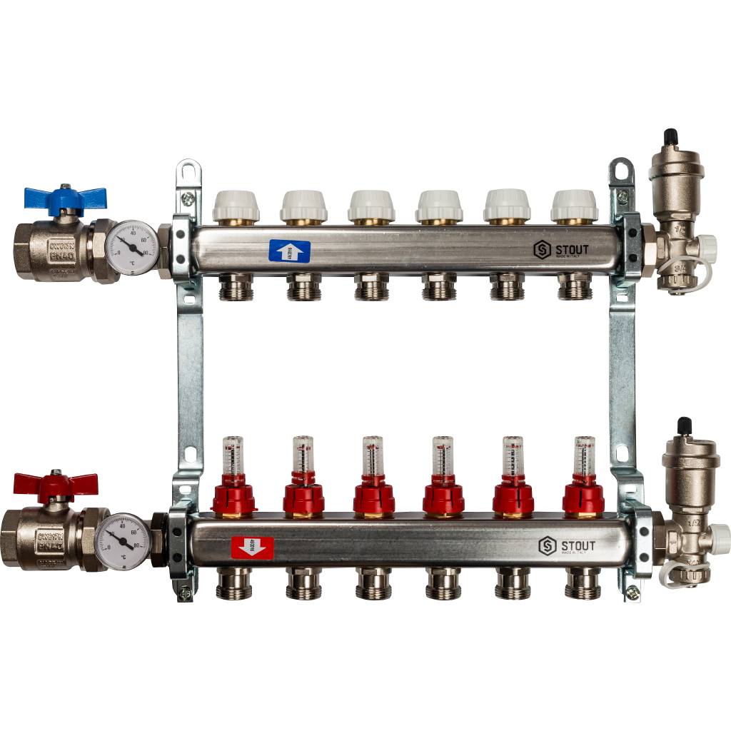 STOUT Коллектор из нержавеющей стали в сборе с расходомерами 6 вых.