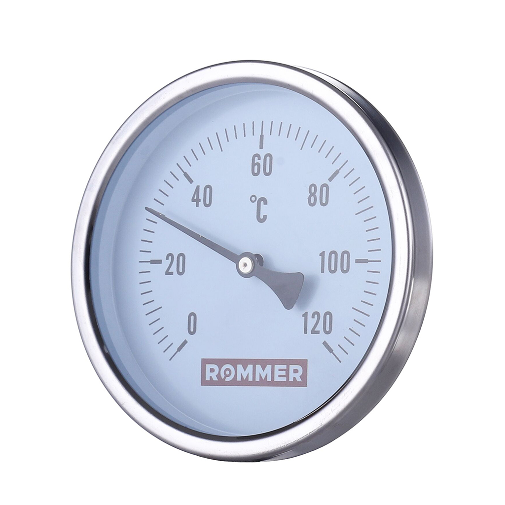 Термометр биметаллический ROMMER Dn 100 мм, гильза 50 мм 1/2 , 0...120°С с погружной гильзой