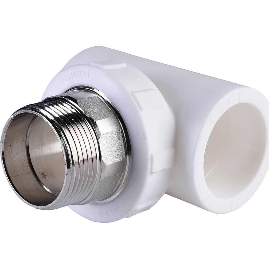 Тройник Политэк 40x1 1/4" НР для полипропиленовых труб (сварка) белый