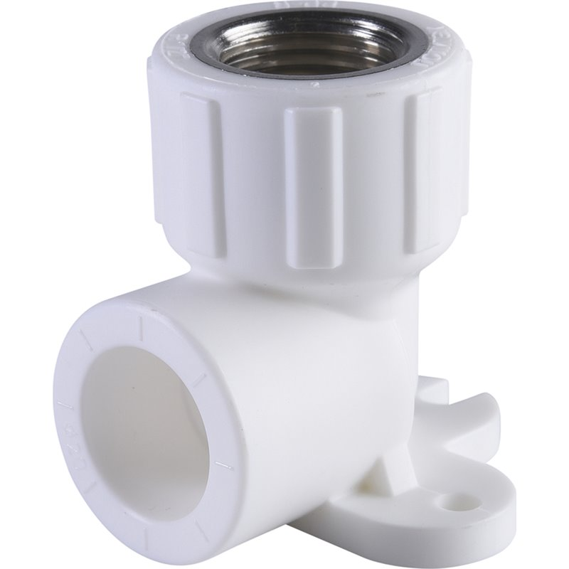 Угольник Политэк 20х1/2" ВР с креплением для полипропиленовых труб (сварка) белый