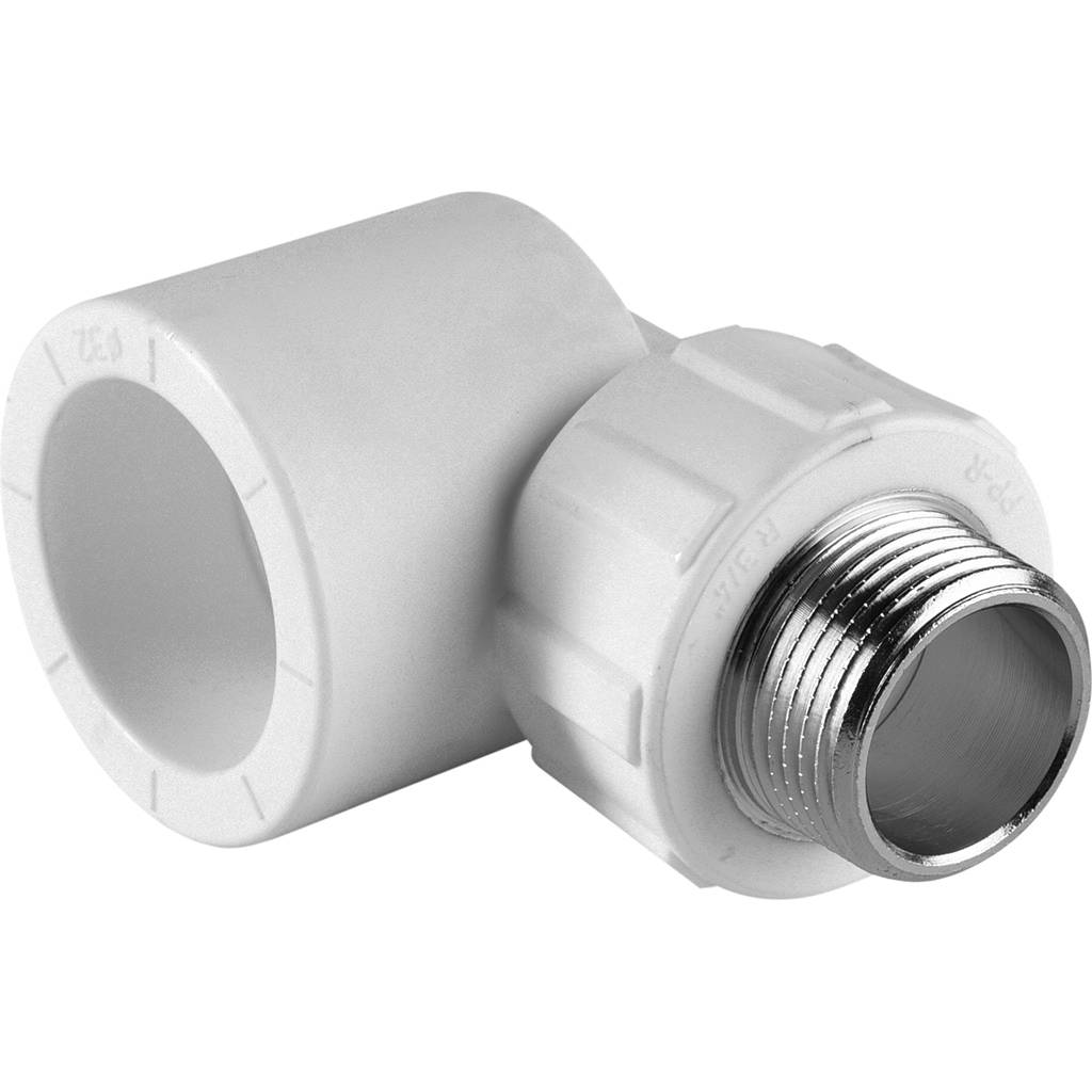 Угольник Политэк 32х3/4" НР для полипропиленовых труб (сварка) белый
